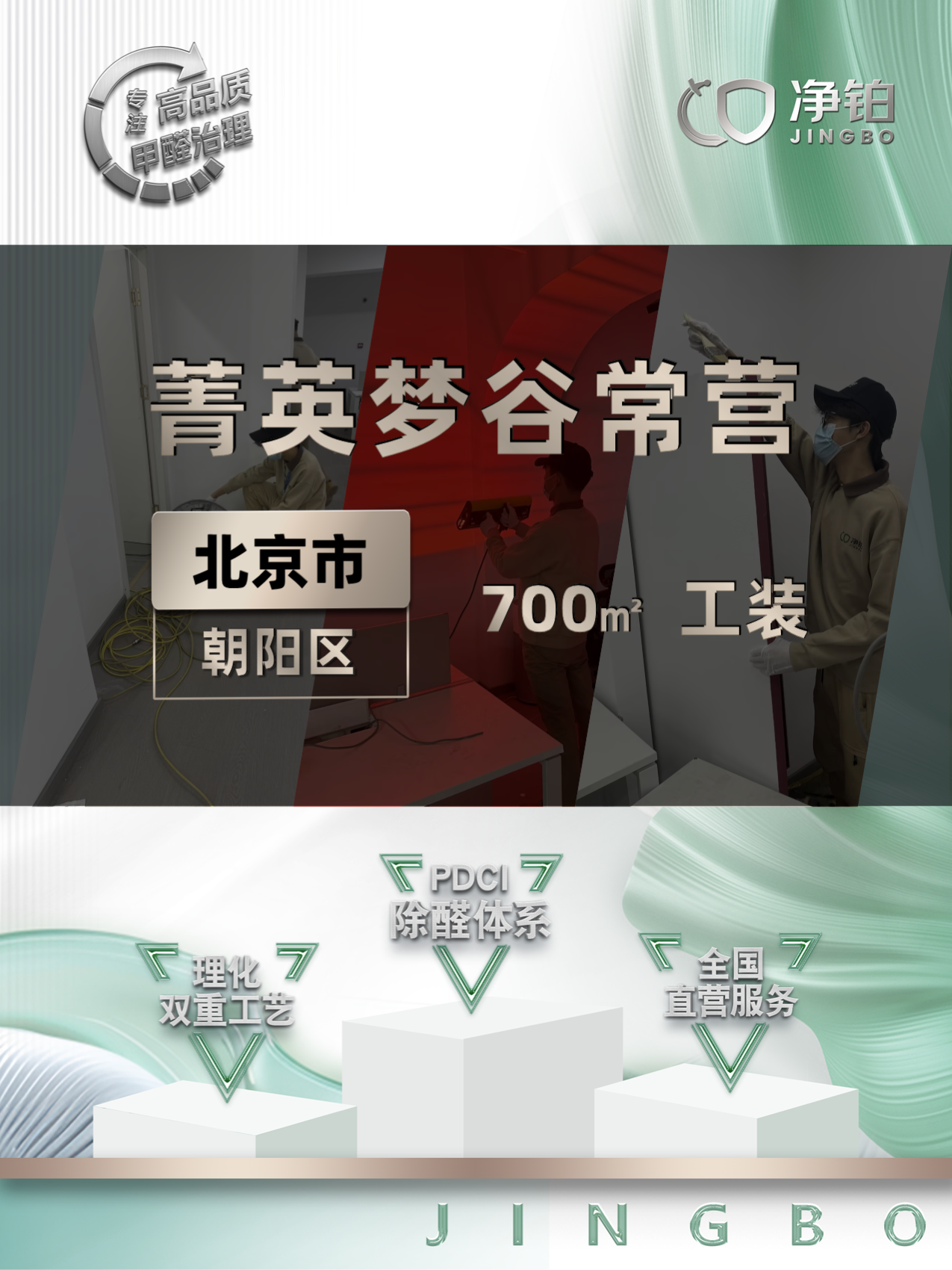 北京菁英梦谷常营700㎡工装除甲醛服务 浏览数:592次 发布时间:2025-02-19 15:53:00 作者:cq.jbhbjqzl.com 北京朝阳区除甲醛|菁英梦谷常营|治理服务治理公司:净铂治理时间:2024年10月15日除醛面积:700平方米上门地址:北京朝阳区菁英梦谷常营案例效果:已第三方CMA检测机构确认达标